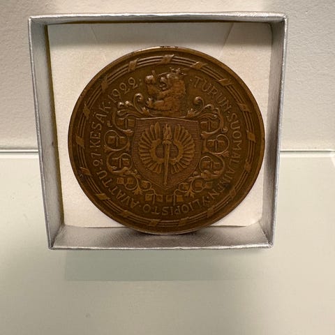 Keräily mitali PAAVO NURMI 1897-1973 THE FLYING FIN. Nurmen rinnassa numero 275. Mitalissa kuva myös ELIZABETH II:toisesta.