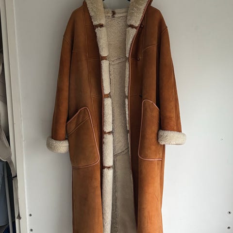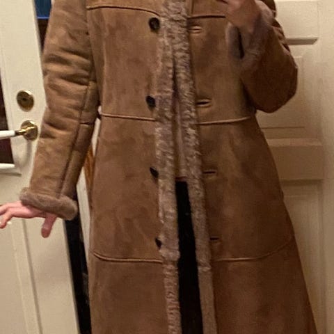 Upea, lämmin aito kelsiturkki, lampaan villa. Pehmeä. Takissa suuri huppu ja taskut. Koko 42