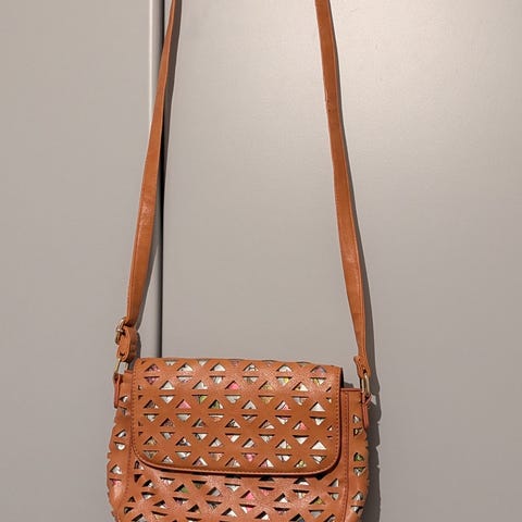 sisällä on kaksi taskua seka kaksi avotaskua. Laukun ulkopuolella on yksi vetoketjullinen tasku.