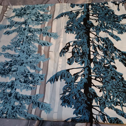 Vallilan sivuverhot 2 kpl, lyhennetty silitettävän lyhennyssuikaleen kanssa eli on helppo purkaa. Tankokujat.
