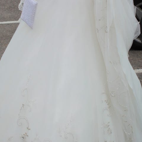 Morsiuspukuliikkeestä ostettu kesän 2025 malli. Kerran pidetty ja heti pesetetty prinsessamallinen hääpuku.