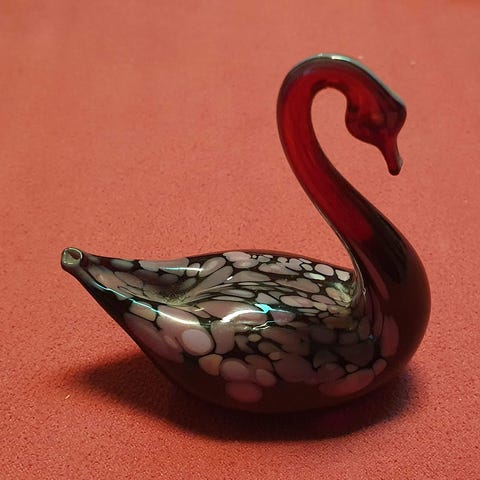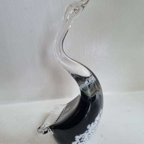 Myydään kaksi upeaa Suomessa käsintehtyä Studiolasi-merkkistä lasijoutsenta tarroilla.