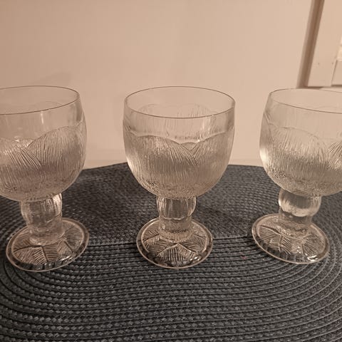 Iittala/nuutajärven juomalasit. Valmistettu 80-luvulla, uskoakseni ei ole olleet käytössä. Reunat aivan ehjät. Tarjoa..