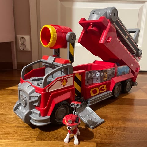 Ylellinen Ryhmä Hau paloauto, jota voi pidentää ja jossa on ääni. Samppalla on liikkuvat jalat.