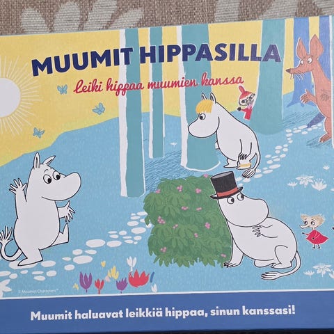 Uudenveroinen Muumit hippasilla -peli. Sopii vaikka joululahjaksi. Ajastimen paristot hankittava erikseen (3 x 1,5 V).