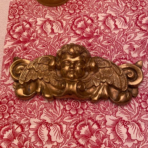 Pääsiäisteemainen vintage-veistos, jossa messinkinen pieni enkelihahmo seisoo kauniin marmorisen munan päällä. Enkeli on piirteiltään hyvin taidokas ja yksityiskohtainen. Alla on koristeellinen filigraanijalusta, jonka pohjassa lukee ilm. 1991 (viimeinen numero epäselvä). Ks. kuvat. Korkeus 14 cm.