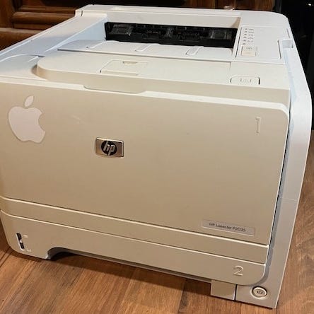 HP:n iäkäs mutta laadukas verkkotulostin, toimivana poistettu aikanaan käytöstä väritulostimen tieltä.