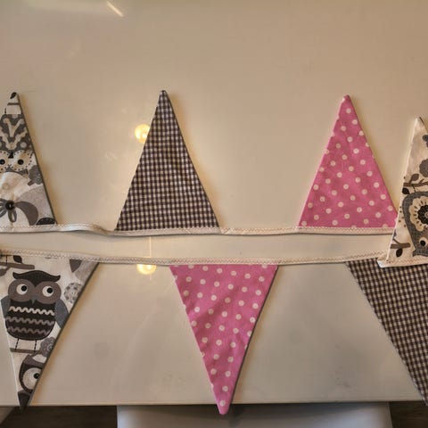 Puuvillakankaista ommeltu viirinauha, löytyy useampi erilainen.