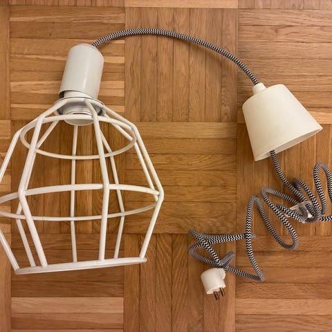 Riippuvalaisin, jossa metallinen ritiläkupu. Sokeripalan tarvitset.