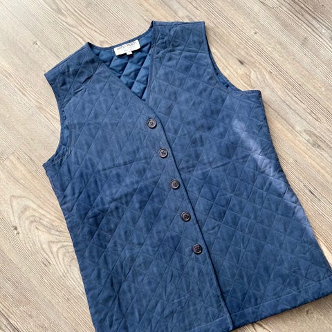 Tummansininen merkkiliivi, siisti ja juuri pesty.