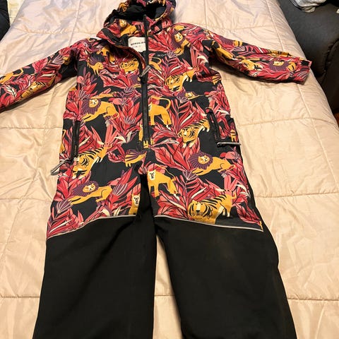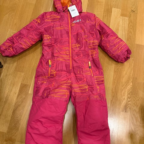 Ellos Söpö vaaleanliila lasten haalari koossa 110, suunniteltu tytöille, pupukuvioita. Paksu ja lämmin pakkassäälle ja pitää tosi hyvin kosteutta. Ollut käytössä yhdellä tytöllä talvella 2024 vain 2-3kk. Ei kulumia polvissa tai takana.