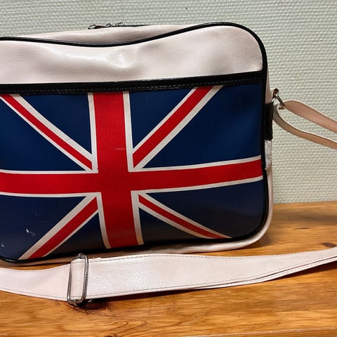 Uudenveroinen olkalaukku vetoketjulla, tekonahkaa. Koko n. 25 x 30 cm. Säädettävä olkahihna. Koko lipun kokoinen ulkotasku, sisällä pieni vetoketjutasku.