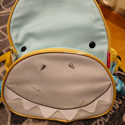 Lasten reppu, valmistettu kestävästä kankaasta. Väri on keltainen mustilla raidoilla ja siinä on oranssit kantohihnat. Reppu on unisex-malli, sopii kaikenikäisille lapsille. Erittäin paljon käytetty ja käytössä nuhjuuntunut ja vaatii pesua(jää ostajalle)