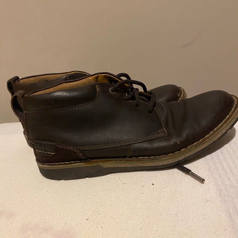 Clarks’ Original saappaat, koko 41 1/2, ruskea väri, valmistettu mokkanahkasta.