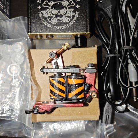 Tatuointitulostin ja toinen akku tatuointikoneeseen.