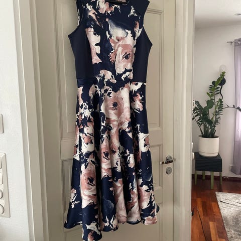 Myydään sievä lumihiutale -kuvioinen sininen juhlamekko. Tätä on pidetty viimeksi kai 2017-2018 joulun tanssiaisissa, minkä jälkeen kulkenut vain vaatekaapin perukoilla. Ostettu uutena. Yläosassa on paljetit lähteneet yhdestä kohtaa irti, näkyy kuvissa.