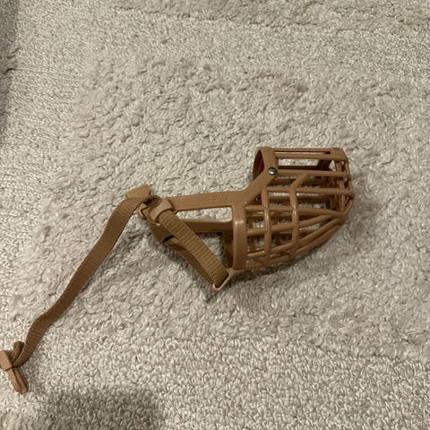 Muovinen kuonokoppa nylonisella kiinnitysremmillä.