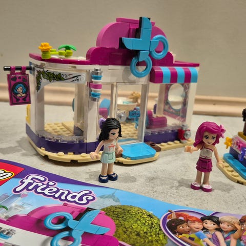Lego Friends -musastudio. Sohvassa ja nojatuolissa muutama osa ei ole alkuperäinen, muuten kaikki osat tallessa. 10 euroa.