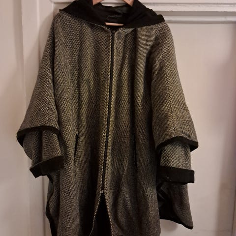 Tyylikäs takki. Sisältää 20 % villaa. Takin pituus n. 98 cm, hiha n. 49 cm, rintakehä n. 90 cm, vyötärö n. 80 cm, lantio n. 90 cm. Postitus (9e) tai haku.