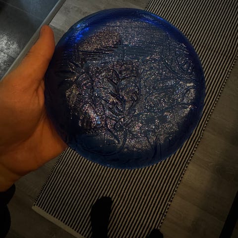 Halkaisija n. 38,5 cm ja korkeus n. 3,5 cm.