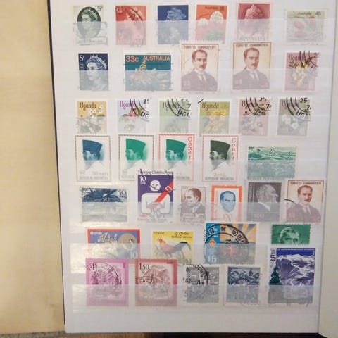 Postimerkkikansiossa hajanaisia merkkejä ja paljon tyhjää.