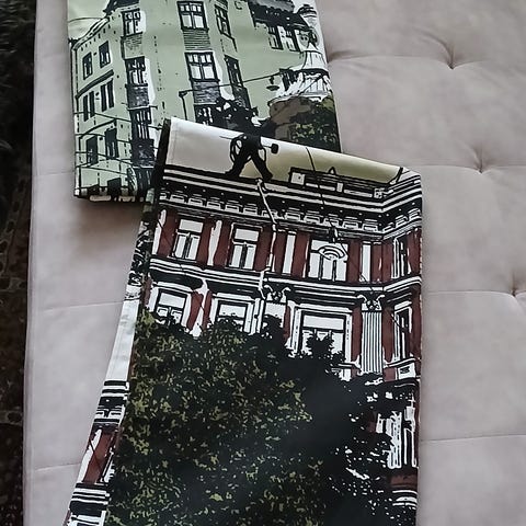 Musta-valkoiset sivuverhot 2 kpl. Tankokuja ja rypytysnauha.