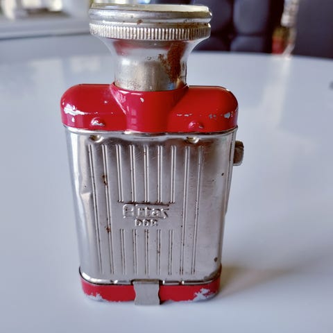 Musta osa metallia, punaiset muovia. Toimii. Paristot ei sisälly