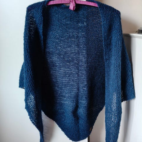 Farkunsininen (n160cm leveä) Alpakka -silkki Kolmiohuivi, huivi, villahuivi