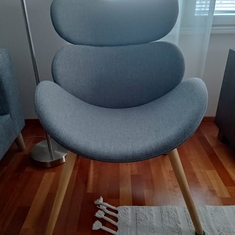 Uudenveroinen nojatuoli, harmaa. Jämäkkä ja hyvä istua. Irrotettavat ja pestävät pehmustekankaat. Sotkamossa