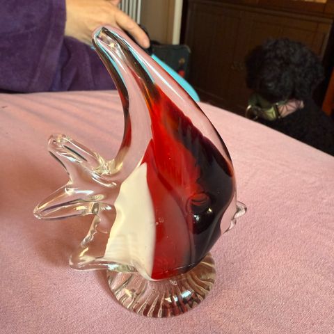 Lasipaja Sinisiiven lasikala koriste-esine kirkasta lasia, jossa musta ja valkoinen kuviointi. Sopii sisustukseen ja keräilyyn.