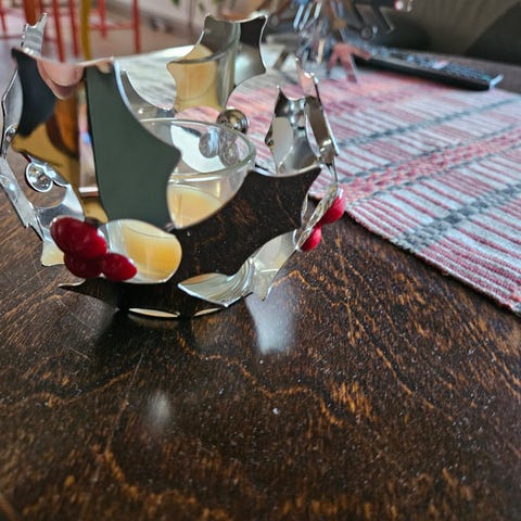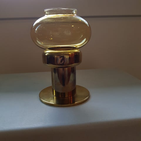 Myydään kuusenmallinen kynttilälyhty. Messinkiä.