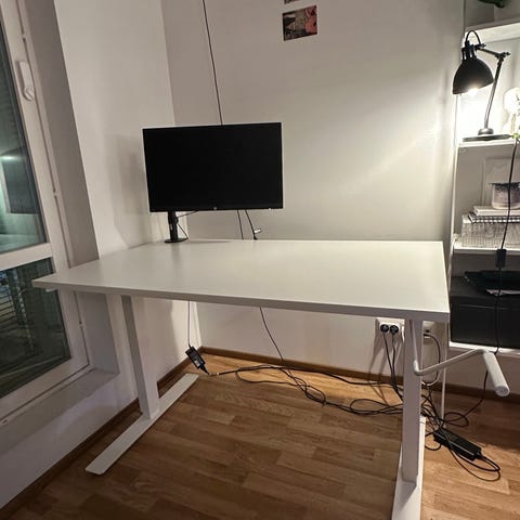 Kuin uusi IKEA:n työpöytä, jossa muuten ei ole kulumaa tai käytön jälkiä paitsi todella pieni kolhu pöydän keskiosassa.
