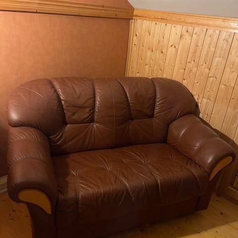 Vaalea nahkasohva