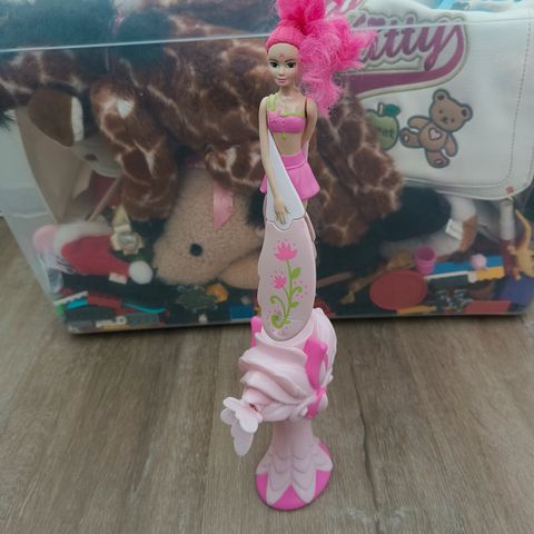 Toimiva lentävä keiju. Siivet ilmeisesti kiinnitetty väärin kun lentää minne sattuu mutta saa laitettua uudestaan kiinni. Latauspiuha mukaan.