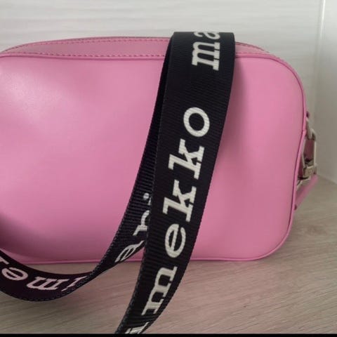Marimekko Gratha nahkainen olkalaukku, kerran käytetty, hintalappu kuitenkin vielä paikallaan. Laukussa on vetoketjusuljenta ja säädettävä olkahihna. Väri ostaessa mainittu vaaleanpunaiseksi, omaan silmään väri on ns. dusty pinkin ja beigen välimuoto, hyvin kaunis kyllä.