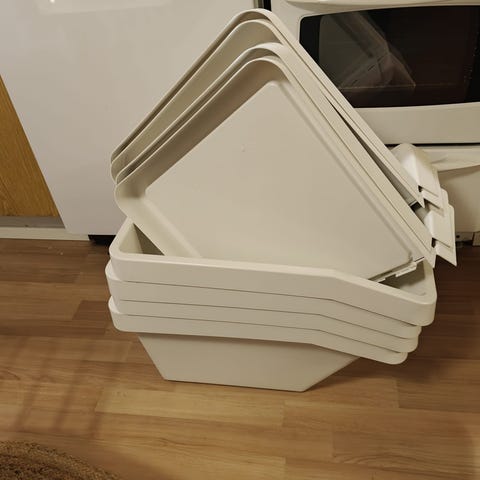IKEA Sortera säilytyslaatikko, tilavuus 37 litraa, valmistettu valkoisesta muovista. Soveltuu erilaisten tavaroiden järjestämiseen ja säilyttämiseen kotona tai toimistossa. Pieniä käytön jälkiä saattaa olla. Käytetty koiran ruuan säilytykseen.