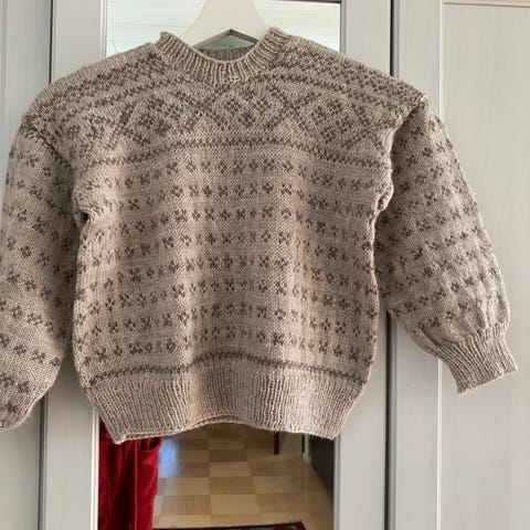 Myydään käsin neulottu lasten islantilaisneuletakki. Koko on arviolta 92/98. Niska-helma-pituus 37 cm, kainalo- kainalo 30 cm. Takki on vaaleanpunainen harmaalla ja valkoisella kirjonnalla ja edessä on vetoketju. Yleisilmeeltään siisti käytetty kunto, nyppyjä vähän on, huomaamaton kellertävä tahra oik. kyljessä ja muutama langan pää törröttää. Hajusteeton, savuton eläinkoti. Nouto Lahdesta tai postikulut ostajalle. MMM.