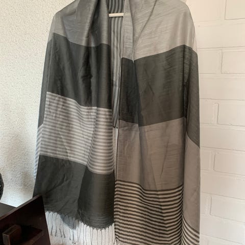 Sano Nepal mustavalkoinen uudenveroinen / käyttämätön seepra silkki hartiahuivi.