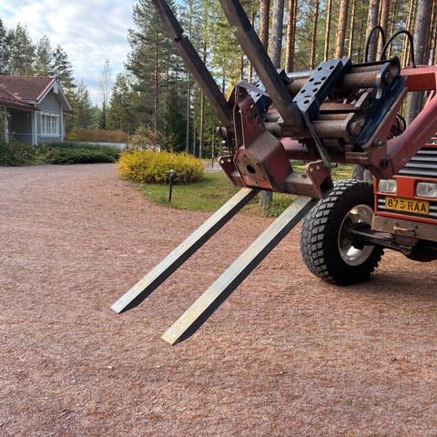 Myytävänä vankat trukkipiikit Liperin Kone- ja kuljetus tekemät. Kuorma 1500kg. Piikkien pituus 105cm max leveys n. 130cm.