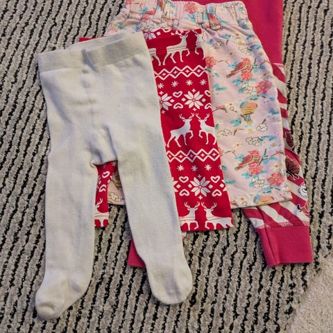 Vihertävät housut Dirkje, Vendi sininen body ja Ciraf sini-harmaa body. Housuissa vähän nukkaa, mutta muuten hyväkuntoisia.