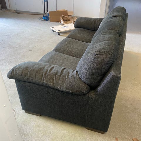 Toisen reunan istuintyyny kuluneempi kuin toisen. Toimii loistavasti silti.