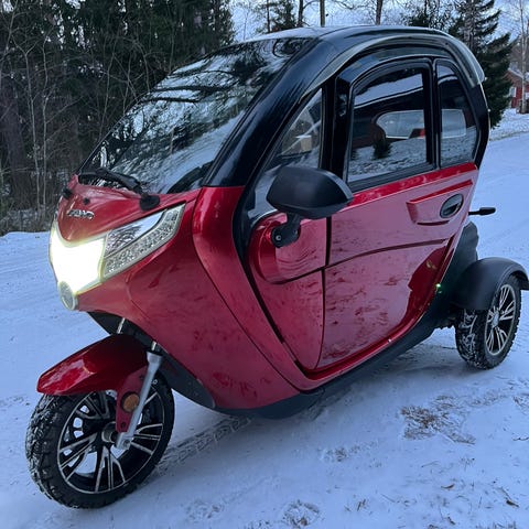 Myydään erittäin vähän ajettu ja laadukas sähkö koppi mopo Skand Gomoto 4.3. Ajettu vain 178km. Juuri asennettu uudet nastarenkaat alle ja testi ajettu. Kaikki käyty läpi ja huolettu. Akut hyvässä kunnossa ja säännöllisesti huolto ladattu. Hyvillä varusteilla. Kaksi paikkainen, peruutuskamera, puhallus, lämmitys, start stop käynnistys, iso koppa ja ovet aukeavat hyvin, usb, radio, blootooth, avattava kattoluukku,avattava takaikkuna, keskuslukitus kaukosäädimellä,sähkö ikkunat. Ainut malli missä metalli ovet niin kuin autossa ( turvallinen). Saa ajaa ilman ajokorttia ennen 1985 syntynyt. Max nopeus 40km/h. Mukaan laturi ja kaksi avainta kaukosäädimellä. Uutena ovh. 8000e. Kuljetus onnistu!!!