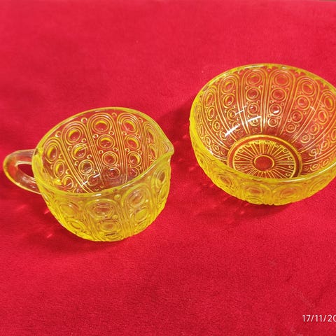 Riihimäen lasin Riikinkukko sokerikko ja kermakko