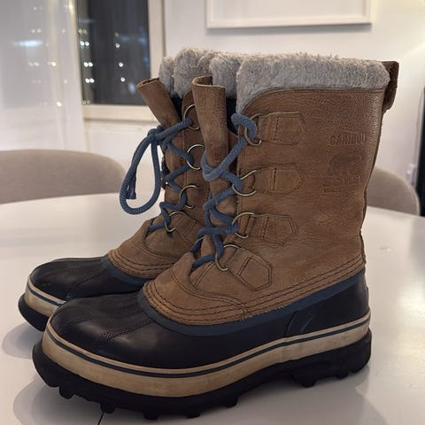 Myydään Sorelin legendaariset Caribou talvikengät kokoa 39,5. Näissä on aika reilu mitoitus sitten yleensä, eli mahtuu varmasti myös 40 koon jalkaan. Sovitus mahdollista Hyvinkäällä. Toisessa kengässä pieni tämän mallin tyyppi vika, eli kumi haljennut pinnasta vähän. Ei kuitenkaan päästä vettä läpi ja helposti korjattavissa jos tuo häiritsee.
