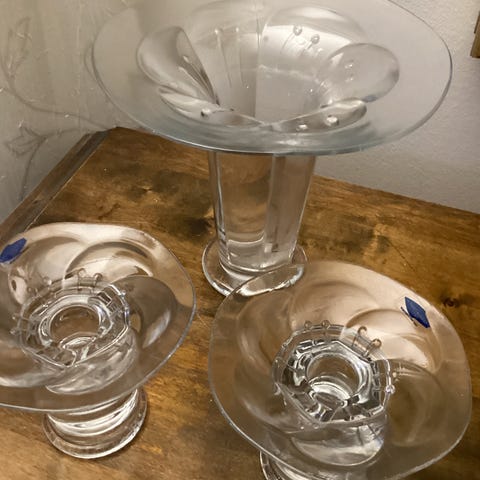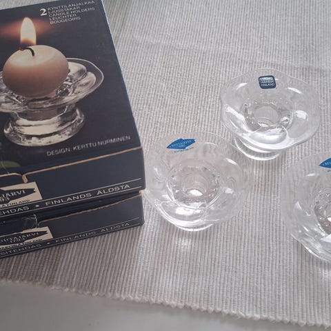 Nuutajärven Kerttu Nurmisen suunnittelemat 3 cm korkeat kynttiläjalat. Hinta 4€/2 kpl.