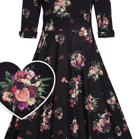 Musta Dolly & Dotty kellohelmainen mekko, napakkaa joustavaa puuvillaa. Koko 44, mieleatäni reilua kokoa. Alla alusmekko, takana vetoketju. Kaunis tyllimekon kanssa, ja ilman. Kainalo-kainalo 59 cm, olka-helma 100 cm. Väri on aivan musta, kuva hieman hämää. Siisti vähän käytetty kunto.