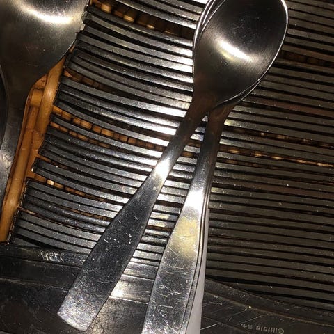 Iittala aterinsetti, valmistettu ruostumattomasta teräksestä. Setti sisältää haarukan, veitsen, ison lusikan ja pienen lusikan. Sopii yleiskäyttöön keittiövälineenä.