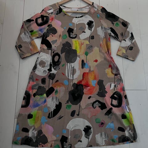 Mustaharmaakuvioinen Versonpuodin Kotitakki koossa S. Siisti käytetty kunto. Nouto tai postikulut ostajalle.