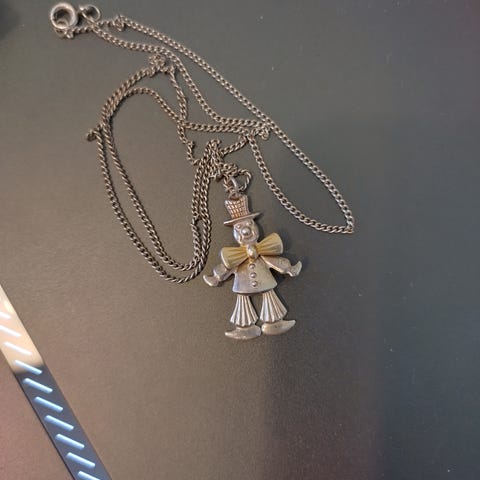 Klovnilla liikkuu kädet, jalat ja pää. Kullattu korupinni, valmistettu kullatusta materiaalista. Korupinni on unisex-mallia ja esittää klovnin hahmoa. Sopii koristeeksi erilaisiin vaatteisiin tai asusteisiin.