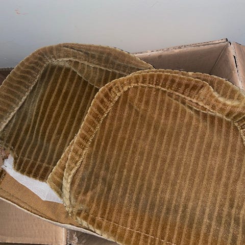 Eli kuvanmukainen paitsi hieman pienemmällä teippipitoisuudella varustettu kuljettajan penkin selkänojan pehmuste eli tyyny hakusessa. Volvoon mallia 240 tai 242 tai 244, ja se vanhemman mallin lyhyemmällä selkänojalla ja kolmion muotoisilla niskatuilla varustettu penkki kyseessä.